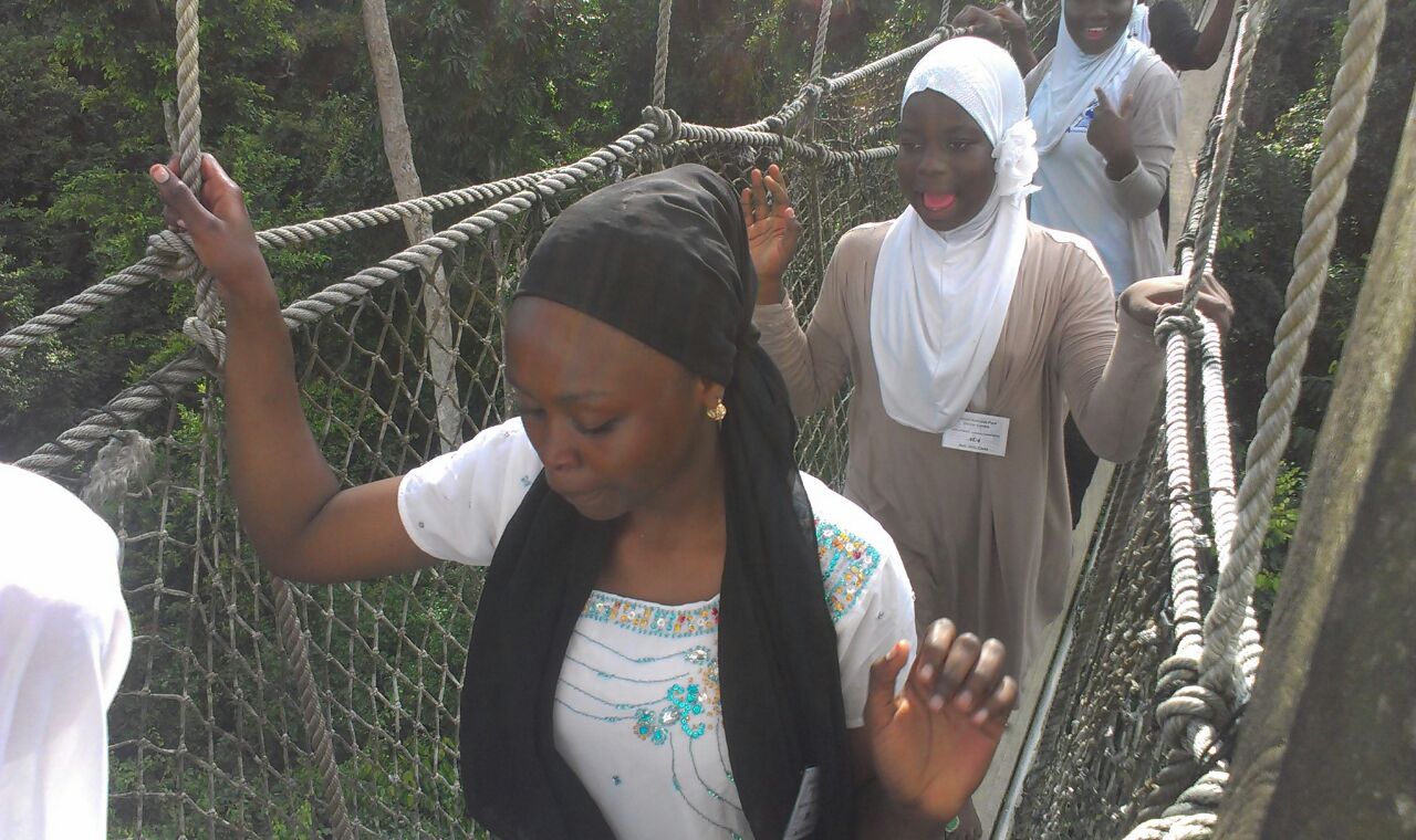 It was another exciting Saturday for the 60 Achievers who visited the Kakum National Park in Ghana’s Central Region last weekend. Since inception of Achievers Ghana, excursions have been a core activity aimed at expanding the horizon of girls and awareness of life outside the community. This was our second trip to the National park and we are extremely grateful to RisingSun Montessori for donating their buses to make this possible.