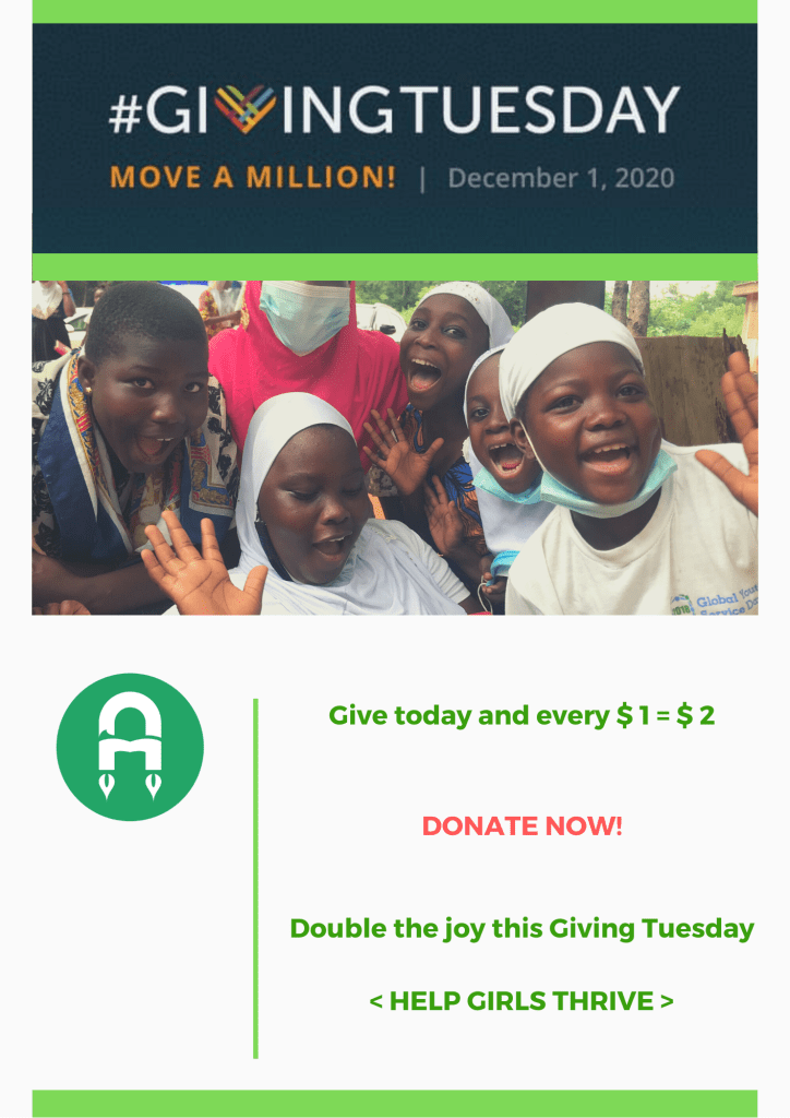 This #GivingTuesday your gift to Achievers Ghana will be matched by GlobalGiving, up to $1,000,000. Your donation support our urgent work to keep girls learning during school disruption and to ensure they return to school in the pandemic’s aftermath. Give a gift that changes lives and changes the world – because when girls thrive, we all strive.