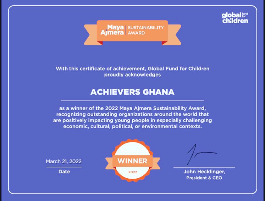 This award, which has been given to 167 community-based organizations since 2005, provides an investment in the winners’ long-term stability at a crucial stage in their development. Achievers Ghana is a winner of this year’s award.