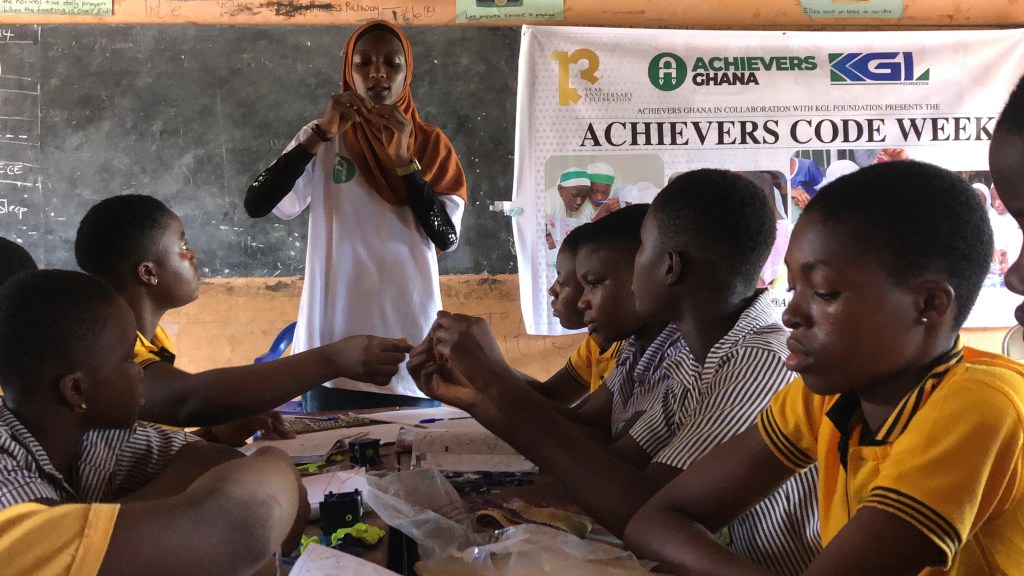 Her journey with Achievers Ghana (Achievers Ghana) began exactly in the year the organization received support from the Kglfoundation (KGL Foundation) to implement the Girls In Tech initiative project. This initiative provided Khadija and many other girls with access to STEM education, leadership training, and a supportive network of mentors and peers.